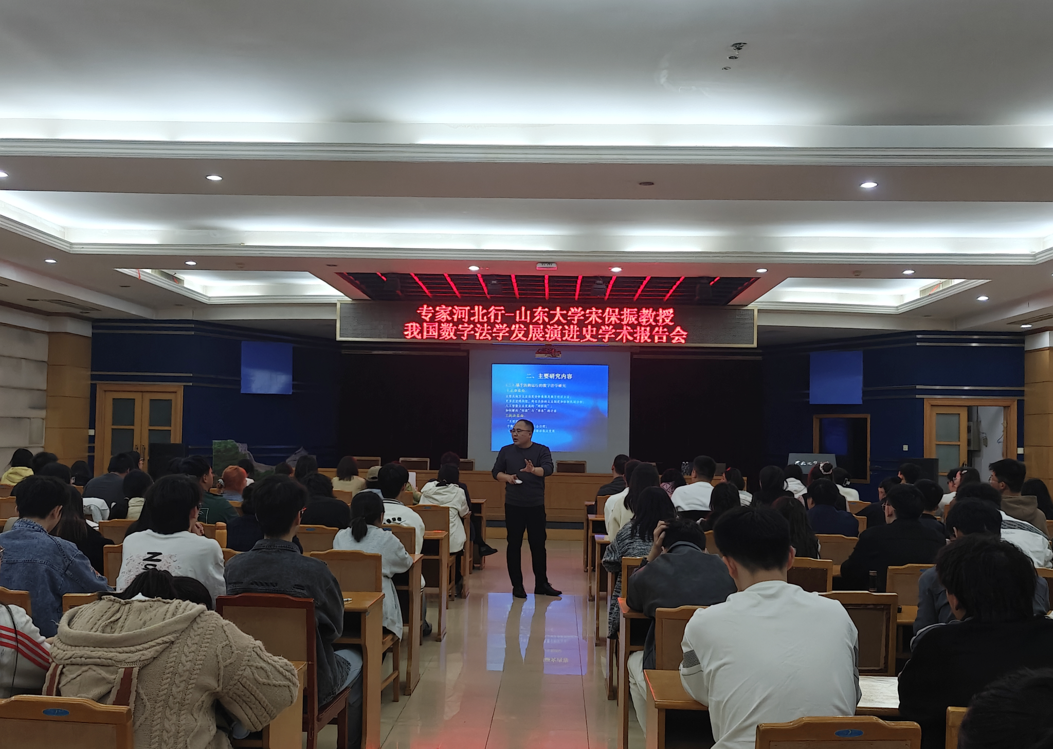 11月2日,山东大学宋保振教授受球王会之邀莅临公司,在教一九楼学术报告厅为公司师生作主题为“中国数字法学研究发展史”的精彩学术讲座。讲座由球王会经理孙日华主持,公司部分教师和在校研究生、本科生参加。