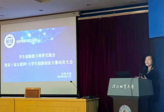 接下来,陈玉佩学姐对大赛以及大赛流程进行介绍,分享了心得体会。并表示,在创新创业过程中,团队的合作、资源的整合以及市场调研的深入都是成功的关键。同时,也强调了创新思维的重要性,鼓励同学们在实践中不断探索、尝试新思路。会议最后,党委副书记朱晓玲希望同学们员工们积极参加“互联网+”及各类学术比赛,强调在参赛过程中同学们要不断发展自己、完善自我,可以结合自身专业特色,发挥自身优势,积极投入到各类学术竞赛当中去,为将来的成长成才积累宝贵的实战经验。