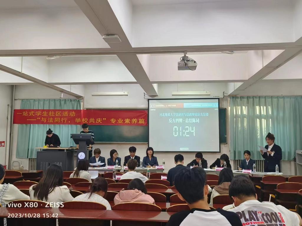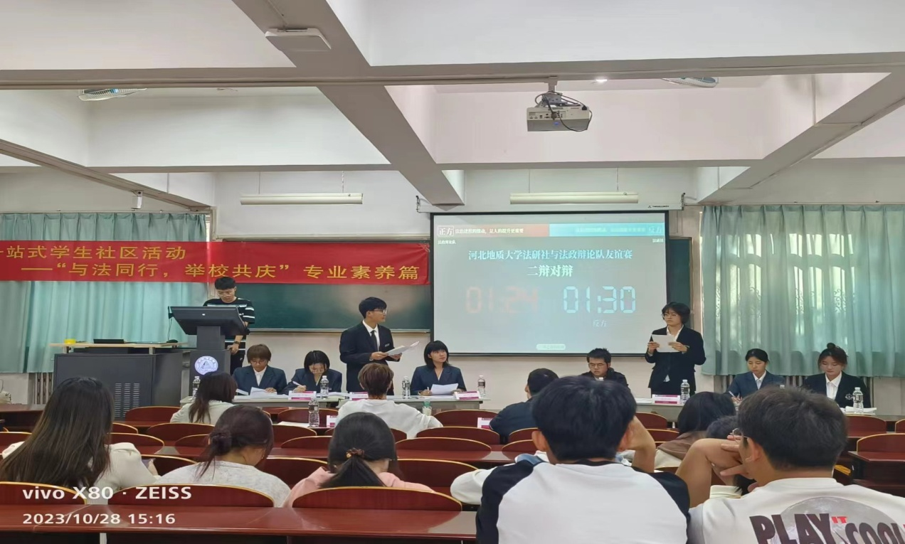 2023年10月29日,为了深入贯彻习近平法治思想,坚定不移走中国特色社会主义道路,引导帮助广大青年员工和团学干部进一步增强尊法学法守法用法的意识和能力,恰逢河北地质大学建校70周年,借助校庆的机会对员工和老师进行法治宣传,球王会在河北地质大学北校区举办了“与法同行 举校共庆”宪法日主题辩论赛,辩论主题围绕“法治进程的推动,是人的提升更重要还是法的提升更重要?”开展辩论。