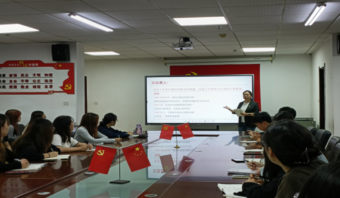 为深入贯彻习近平新时代中国特色社会主义思想,把习近平新时代中国特色社会主义思想转化为坚定理想、锤炼党性和指导实践、推动工作的强大力量,进一步做好入党积极分子和发展对象思想政治教育工作,10月11日晚,球王会开展了入党积极分子与发展对象党课培训。本次党课由法政公司党委书记马沁芳担任主讲,授课主要内容为习近平新时代中国特色社会主义思想实现了马克思主义中国化时代化的新飞跃。