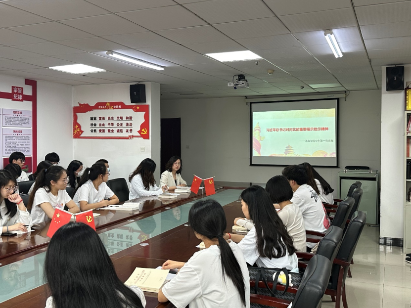 马沁芳书记带领全体党员深刻解读了习近平总书记在我省考察时的重要讲话和重要指示精神,要求全体同学要把自身建设和学习习近平新时代中国特色社会主义思想以及党的二十大精神结合起来,坚定理想信念,顺应时代要求,牢记初心使命,学懂弄通习近平新时代中国特色社会主义思想,把习近平总书记的殷切嘱托转化为建设经济强省、美丽河北的强大动力,切实在以学促行上下功夫,勇于实践、善于实践,以更加积极的姿态融入京津冀协同发展。