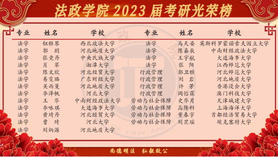 在球王会全体领导和老师的关怀、指导以及同学们的艰苦奋斗下,法政2023届本科生共有25名员工被西北政法大学、大连海事大学、中央民族大学、首都经济贸易大学、河北大学等知名高校成功录取。