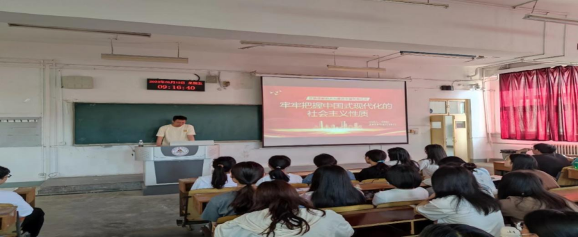 李柏松同志首先带领同学们回顾了坚持社会主义方向贯穿中国式现代化的历史进程,历史的经验告诉我们,资本主义道路在中国是走不通的,长期以来,在以毛泽东同志为主要代表的中国共产党人对社会主义建设进行艰辛探索的基础上,由以邓小平同志为主要代表的中国共产党人在改革开放的伟大实践中开创出中国特色社会主义。在党的二十大报告中习近平总书记阐述了新时代新征程中国共产党的使命任务,他强调必须牢牢把握坚持中国特色社会主义前进道路,不断彰显中国特色社会主义制度优势,不断增强社会主义现代化建设的活力和动力。