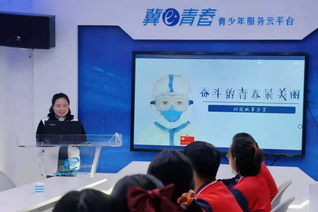 随后,团省委邀请到河北中医公司第一附属医院重症医学科护士杨亚茹为我们分享她的抗疫故事。作为河北省第一批支援武汉医疗队中的一员,在抗疫“集结号”吹响的时刻,她毫不犹豫第一时间请缨,奔赴武汉支援!在武汉抗击疫情期间,她不畏艰苦,默默付出,展现了一名护士“敬佑生命,救死扶伤,甘于奉献,大爱无疆”的初心和使命!正如习近平总书记说过:“奋斗是青春最亮丽的底色。”她向我们展示了克服恐惧、坚定信念、过硬的专业技术和扎实的理论基础是打赢胜仗的利器,鼓励广大青年内心向阳,所向无畏。