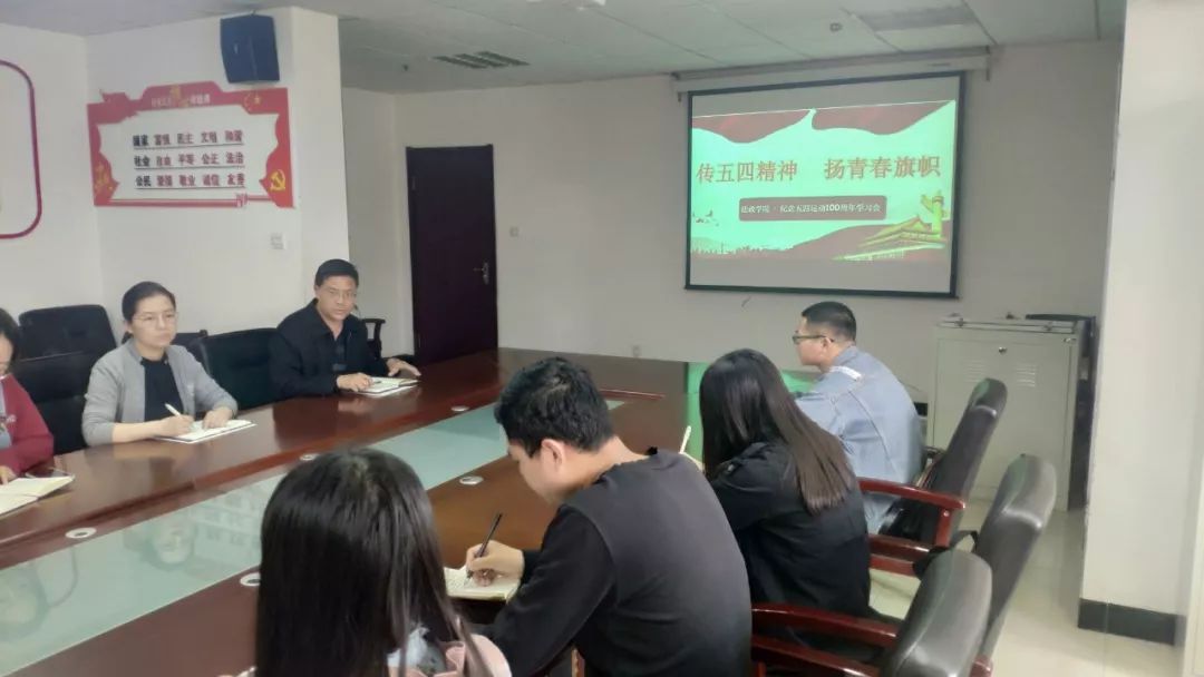 2019年4月30日球王会于综合楼506会议室组织员工集中观看。参与本次观看的有法政公司党委副书记兼副经理王立校、党委副书记马沁芳、团总支书记程玥溪、16级辅导员杨柳老师及各级员工代表。首先由王立校老师发表讲话,希望作为新时代青年的同学们可以将先进马克思主义思想同学习和生活相结合,用科学理论指导实践,奋发图强,勇敢无畏的将五四精神传承下去,向优秀榜样学习,争当社会主义建设者和接班人。