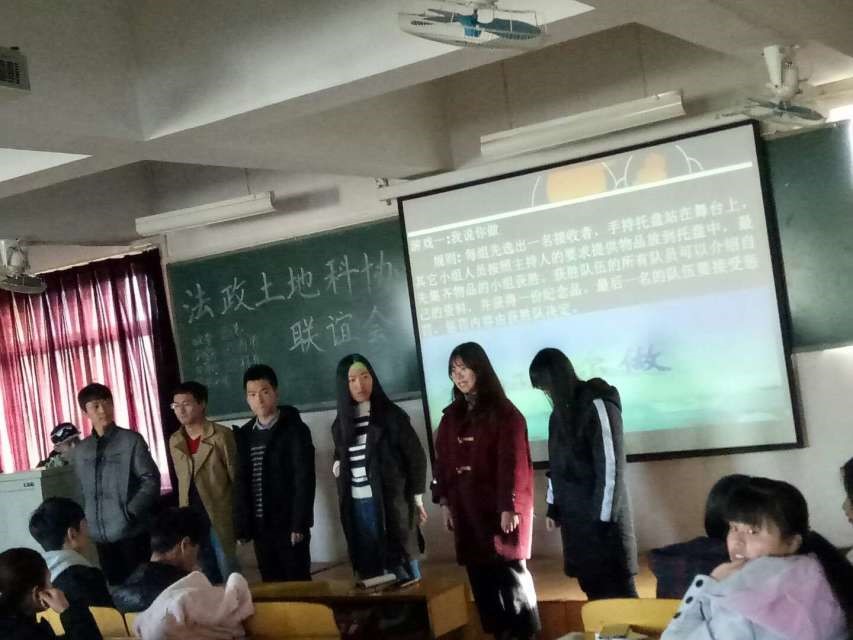 本次交流会共分为四个环节。首先,由两院科协主席和副主席发表讲话。柯晓璐主席表示,土地科协与法政科协有多年深厚的友谊,此次交流会目的是开阔新成员的视野,增进土地科协与法政科协的友谊。土地科协主席独永辉上台讲话:“希望所有新部员能够在科协中锻炼自己,充实老员工活,让课余时间变得丰富多彩,相聚科协,便是缘分,望此次交流会取得圆满成功。”随后法政科协副主席张昊阳发表讲话:“此次联谊大会主要是希望土地科协与法政科协增进交流,联络感情,互相学习,使两院科协越来越好。”此外,各部门部长也发表了讲话,在讲话中,各部部长主要介绍了自己部门的主要职能和自己在工作中积累的工作经验以及对自己部员寄予的深切期望。之后便是全体参与的游戏环节。活动中,大家增进了感情,主席、部长以及各部部员同台“竞技”,各显身手,增强了大家对于科协这一组织的归属感。游戏过后本次活动的进入最后一环节,两院科协进行近一步的交流,相对应的部门进行沟通,交流各自的工作经验以及感受,在交流中阐述了自身对科协的认识,自己希望可以在科协中得到锻炼的愿望。交流大会在合影中落下帷幕,记录下了这个难忘的瞬间。