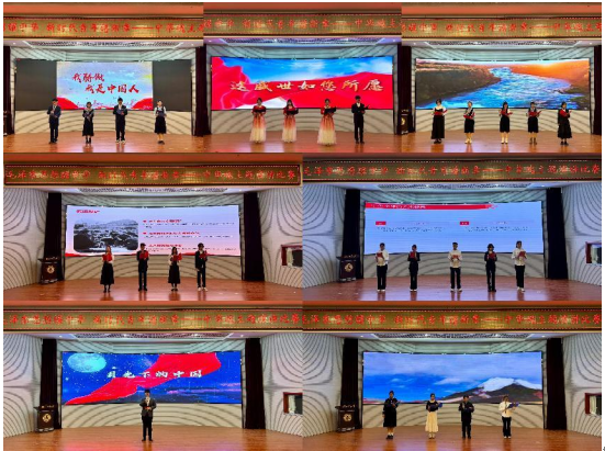 比赛间隙,王梓溪同学带来经典曲目《南泥湾》,以深情的演绎传递出积极向上、砥砺前行的精神力量。赛程最后,参赛选手携手登台合唱了歌曲《大中国》真挚的情感表达对祖国的热爱。
