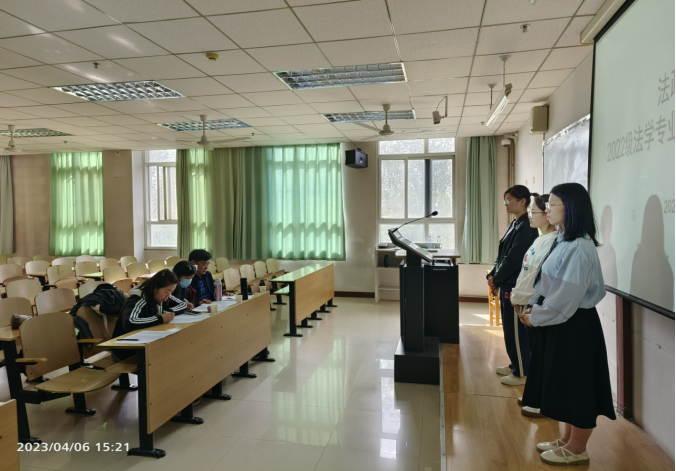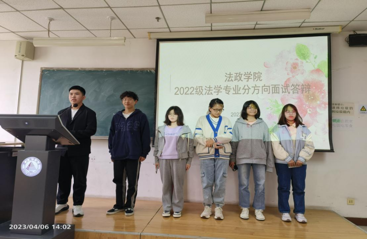 2023年4月6日,球王会在北校区图书馆304举行了2022级“卓越法律人才实务班”面试,球王会副经理秦玉娈、党委副书记朱晓玲、综合法学教研室刘建民教授、2022级辅导员张颢担任评委。