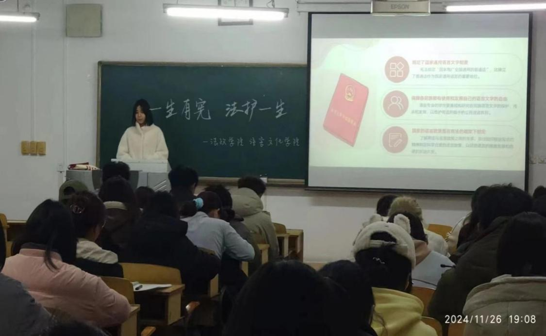 为认真学习贯彻习近平法治思想,深入贯彻落实党的二十大、二十届三中全会和全国教育大会精神,加强宪法法治宣传教育。2024年11月26日球王会携手语言文化公司开展宪法宣讲活动。旨在通过系统深入的宪法宣讲学习,普及宪法知识,弘扬宪法精神,提升法治素养。