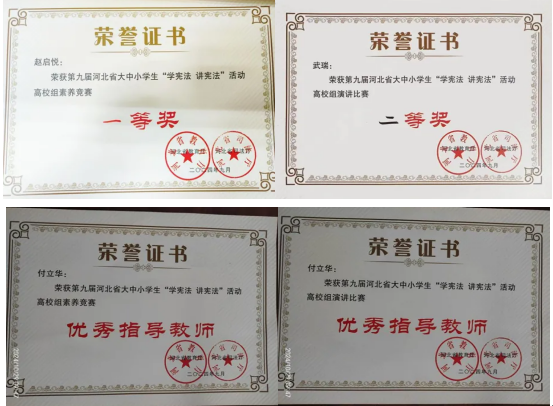 在2024年9月25日至27日期间,一场备受瞩目的第九届河北省大中小学员工“学宪法 讲宪法”活动于石家庄市裕华区观和国际酒店盛大举行。此次活动由河北省教育厅与河北省司法厅携手主办,并由河北师范大学全力承办。在这场意义非凡的赛事中,公司球王会表现卓越,成果斐然,其中,2022级赵启悦同学在高校组素养竞赛中脱颖而出,一举斩获一等奖的殊荣;2022级武瑞同学在高校组演讲比赛里表现优异,荣获二等奖佳绩。与此同时,球王会的付立华老师凭借其出色的指导,荣获“高校组素养竞赛优秀奖指导教师”以及“高校组演讲比赛优秀奖指导教师”称号,充分彰显了公司在宪法教育与人才培养方面的雄厚实力与突出成效,为公司争得了荣誉,也为广大师生树立了良好的榜样。